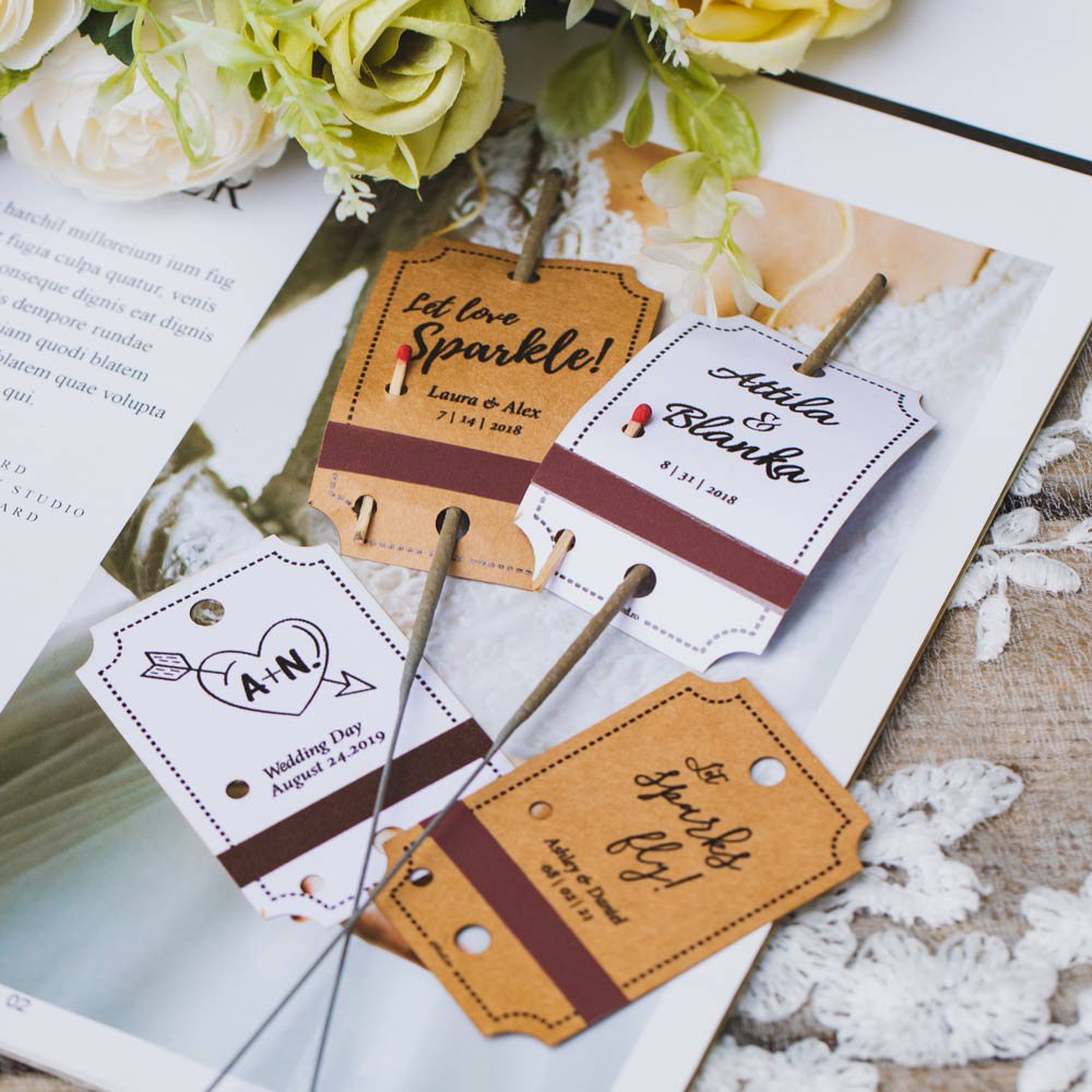 Rustic sparkler tags are a charming and unique way of personalizing your sparklers, making them stand out from the rest. Crafted from high-quality materials such as kraft paper or natural cardstock, these tags add an elegant and earthy touch to your festivities.