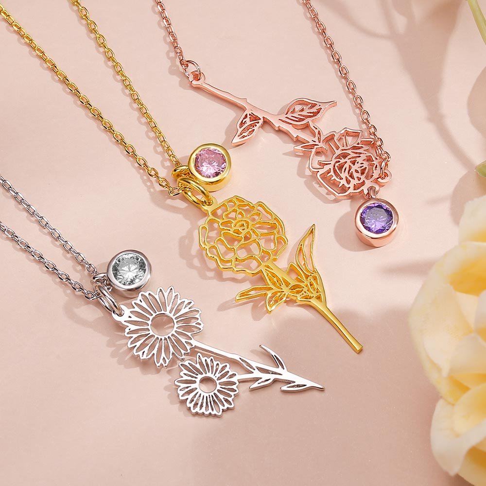 One's life should be as beautiful and splendid as a flower. On this birth flower necklace, you can pick your birthstone and birthflower as the pendants. Two orientations, vertical and horizontal, can be chosen for you to reach a desirable effect.