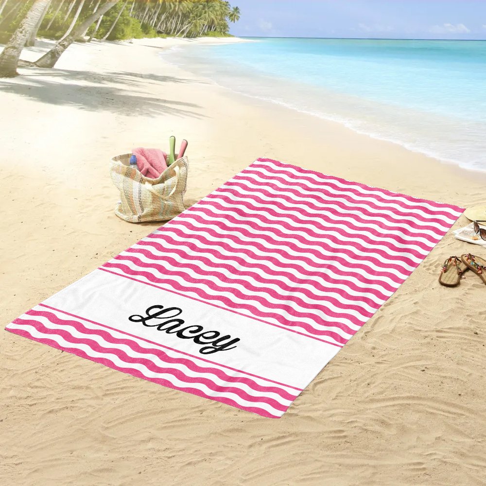 This skin-friendly beach towel made of polyester fiber, there are two size for to choose. It is worth noting that this bath towel can be customized with the text you want, and there are 9 styles to choose from. Compared with the ordinary bath towels on the market, it is simply awesome! In addition, the back of the beach towel is white, and the side with text is the front. Let's make a unique beach towel for your kid or yourself!
