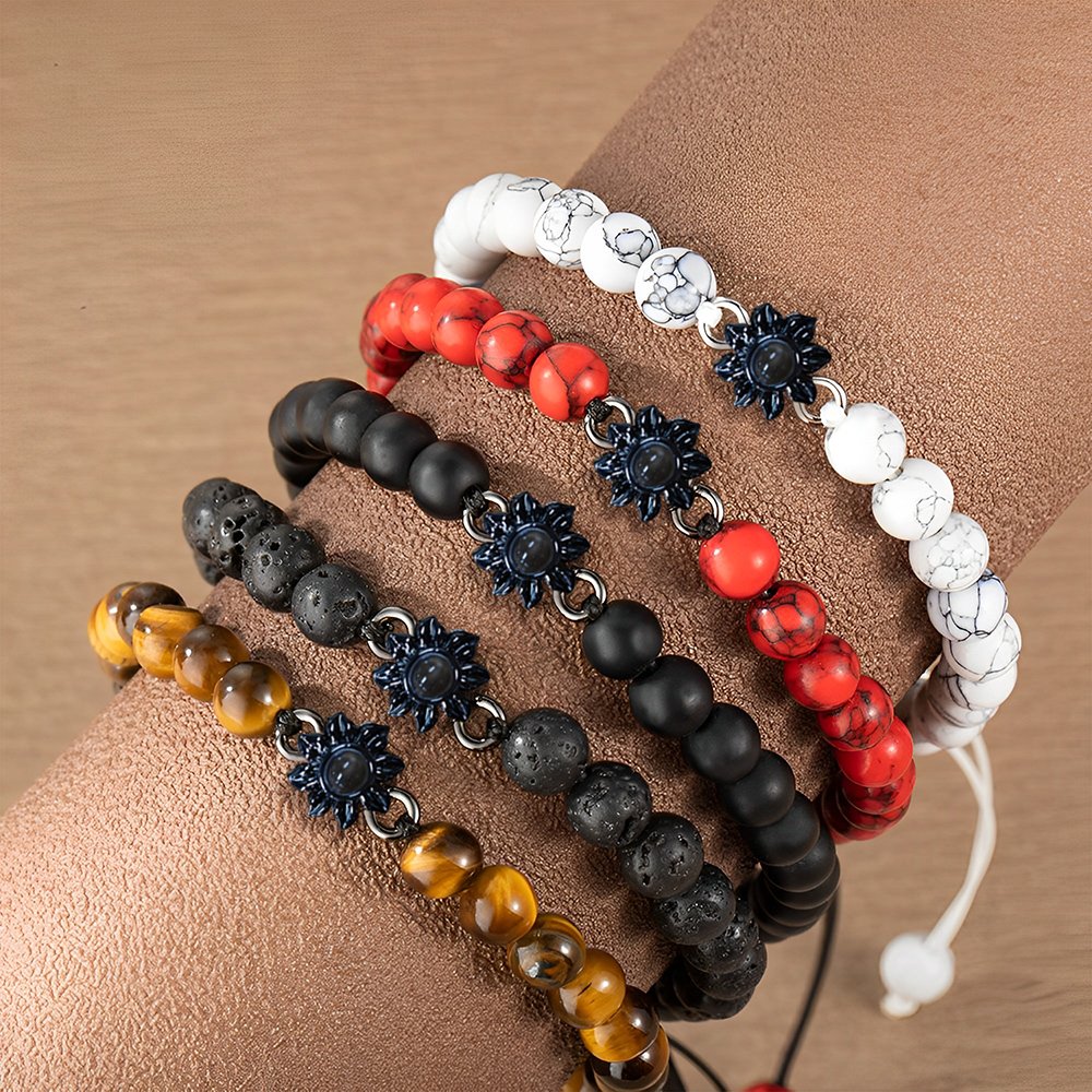 Our bracelet is made of natural stone beads and brass sunflower charms, which have withstood the test of time and are reliable and durable jewelry for modern men and women. The lightweight bracelet provides comfort even when worn for a long time. The adjustable design of this bracelet allows it to fit everyone's different wrist sizes perfectly, ensuring comfort and flexibility.