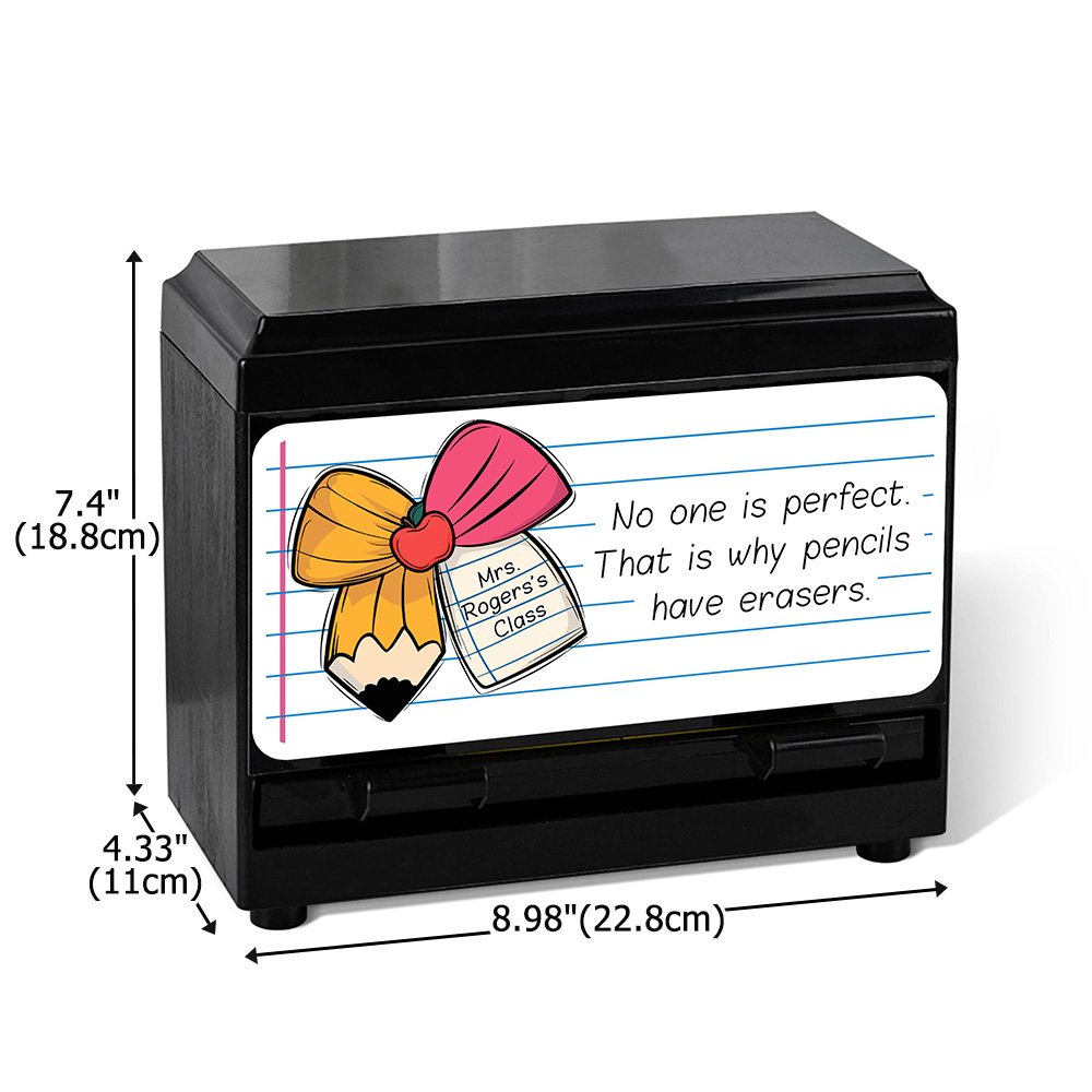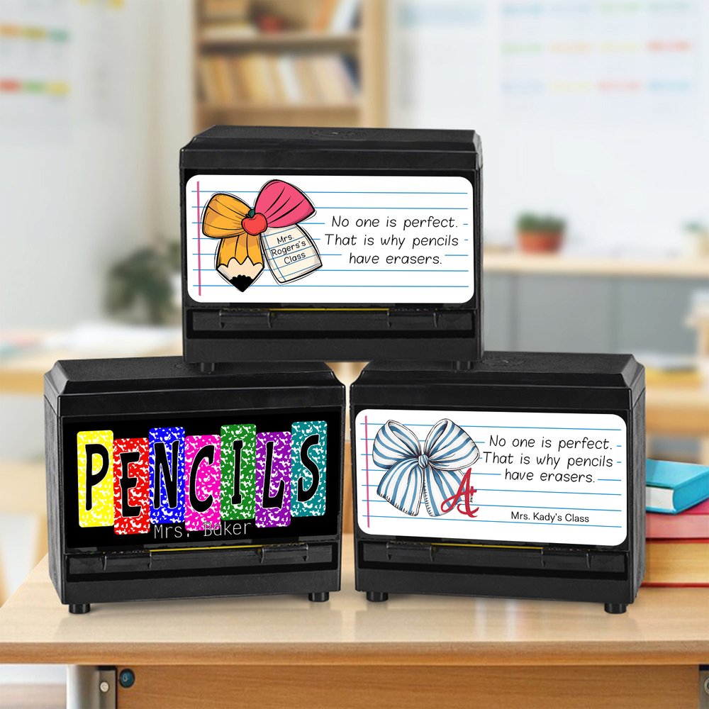 This pencil dispenser features a vibrant and fun teacher-themed design, complemented by a bow element and a variety of fluorescent colors. It is both aesthetically pleasing and practical, making it easier to categorize and identify learning supplies, thus enhancing the joy of learning. Each dispenser can be personalized with the teacher’s title and last name, allowing every educator to have a unique and special item that enhances their sense of belonging in the classroom.
