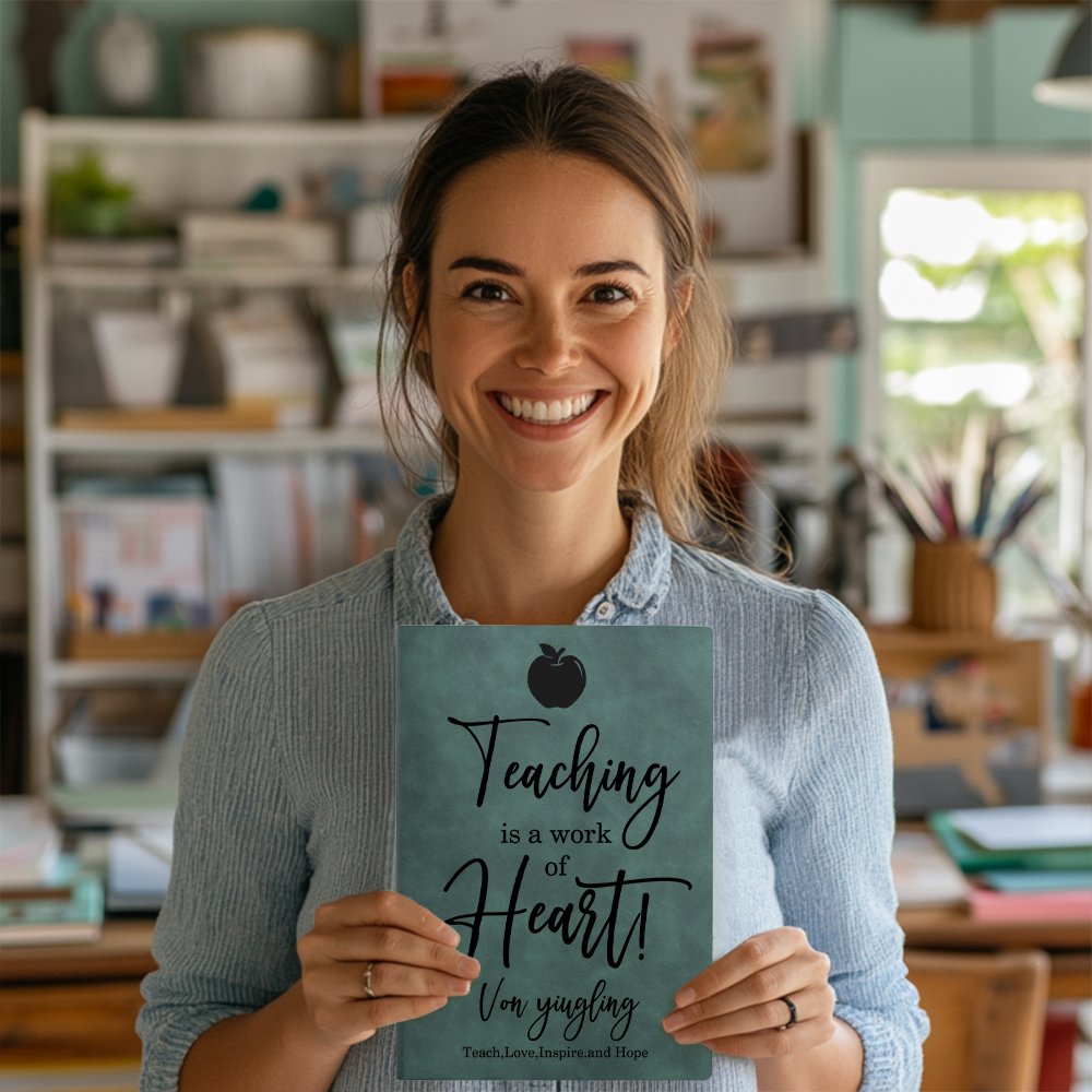 This diary features the inspiring phrase "Teaching is a work of Heart", designed specifically for teachers to record their daily thoughts and activities. Each page offers ample space for efficiently noting important schedules and reflections. You can customize the cover with your name and personalized text, making it a truly unique item that belongs to you.