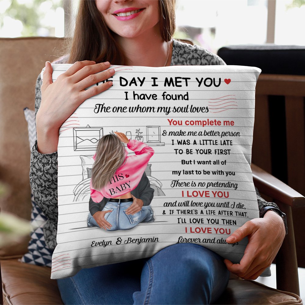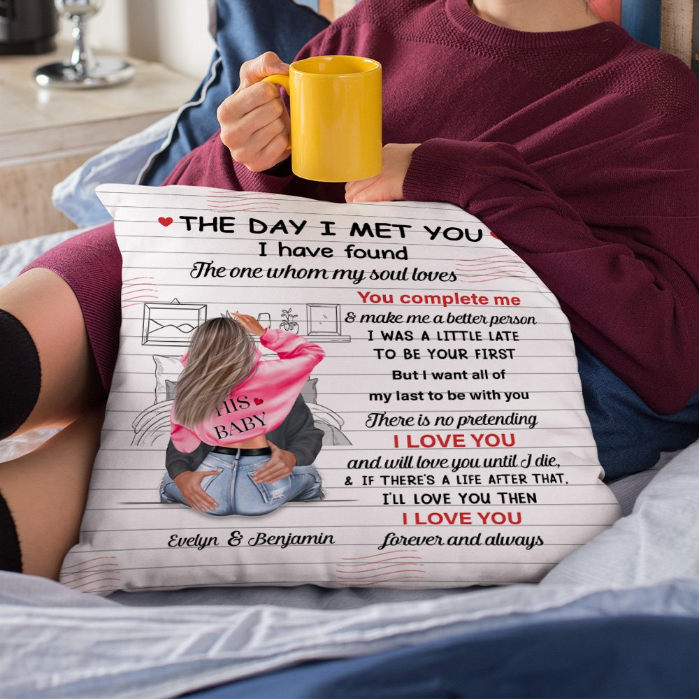 Personalized The Day I Met You Cozy Bed Design Throw Pillow Cover Valentine's Day Birthday Gift for Couple