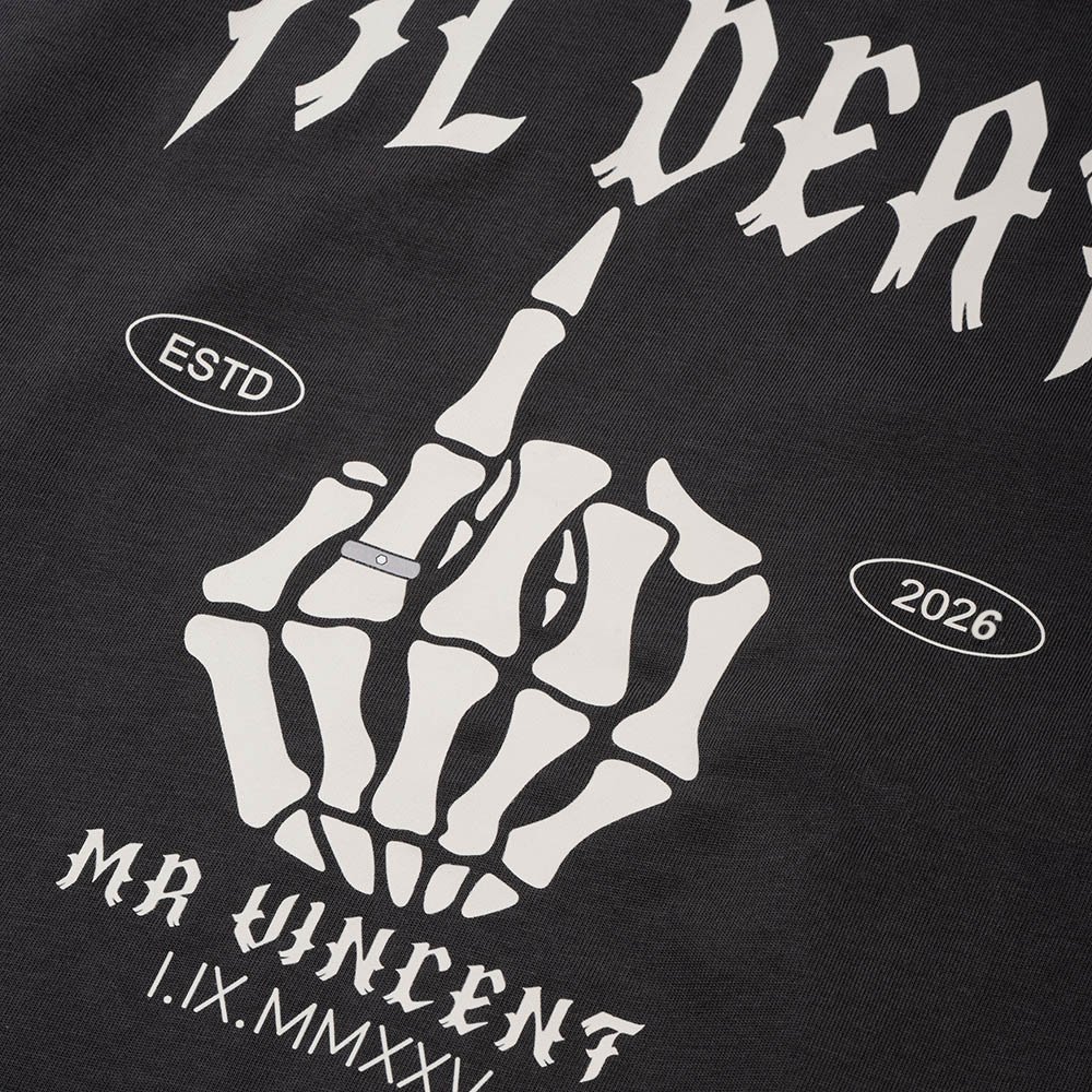 This clothes is printed with a striking skeleton hand pattern, paired with a Roman numeral date, creating a mysterious and romantic atmosphere. The skeleton hand symbolizes unwavering commitment, and the Roman numeral date records the important moments between couples, making every wear an expression of emotion. Text can also be customized on the clothes to make them more exclusive.