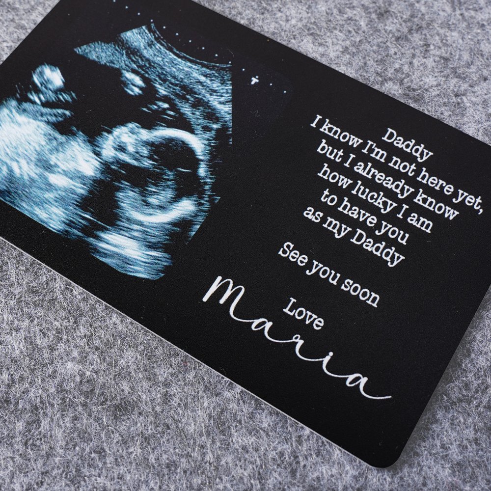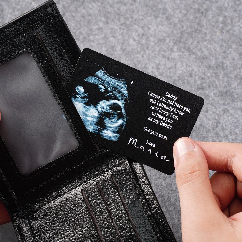 This wallet card creates lasting family memories. Upload a B-ultrasound photo of your baby, customize the name and title, and express your deep love for your child. Every time the wallet is opened, it becomes a heartwarming moment. The card features the touching words: "Daddy, I know I'm not here yet, but I already know how lucky I am to have you as my Daddy."
