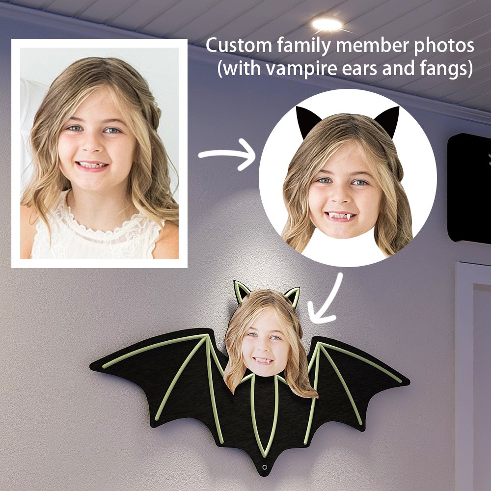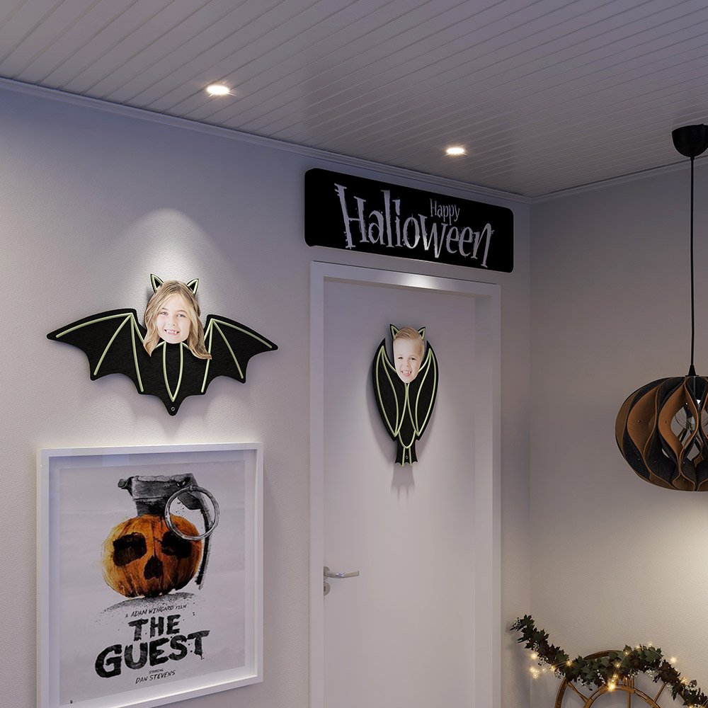 Customize bat designs and avatars, transform family members into vampires and make your house even more spooktacular! The luminous skeleton emits dim green light in the dark, making it mysterious and spooky. It can also be attached to the wall as a Halloween decoration.