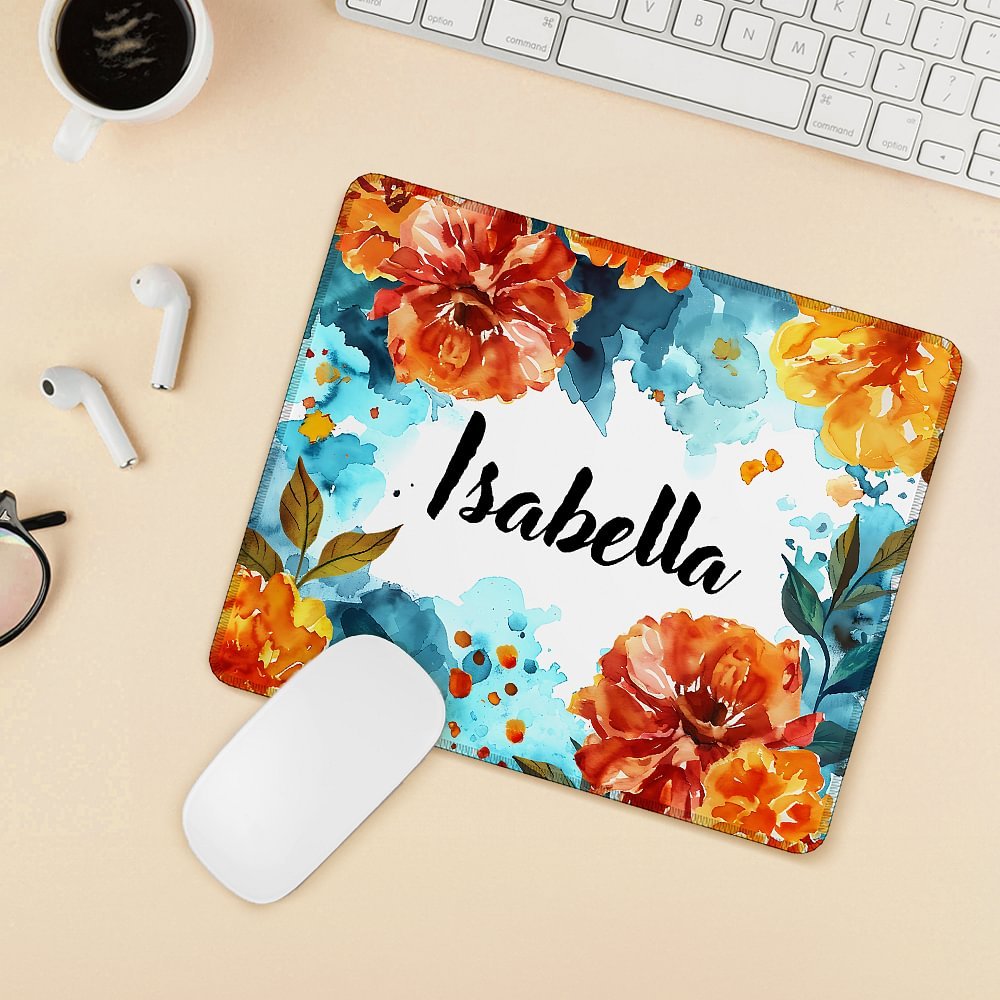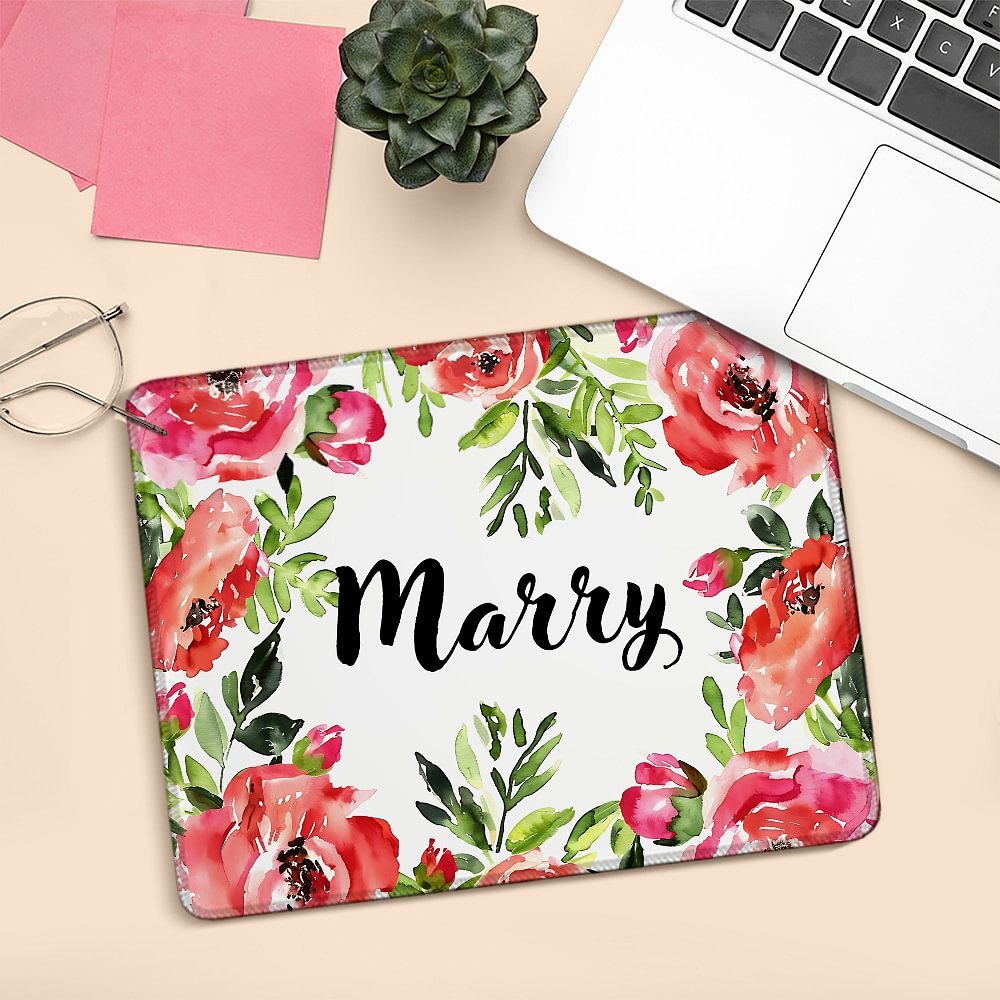 This mouse pad combines functionality with a stylish aesthetic, adding a touch of uniqueness to your workspace or home environment. The text in the center can be customized with a name according to personal preferences, showcasing individuality. The background features patterns of birth flowers representing different months, infusing the design with romance and commemorative significance.