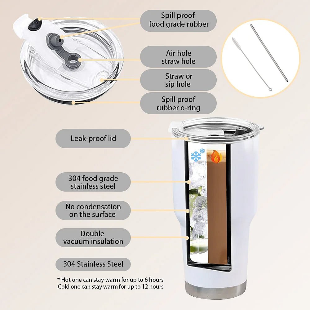 This 30oz tumbler is not only visually stunning but also highly functional. It is constructed with premium quality stainless steel, ensuring excellent insulation to keep beverages hot or cold for extended periods. Whether it's a piping hot coffee on a chilly morning or an ice-cold beverage on a scorching summer day, this tumbler will maintain the perfect temperature for hours. With its generous 30oz capacity, it provides ample space for their favorite drinks, reducing the need for frequent refills.