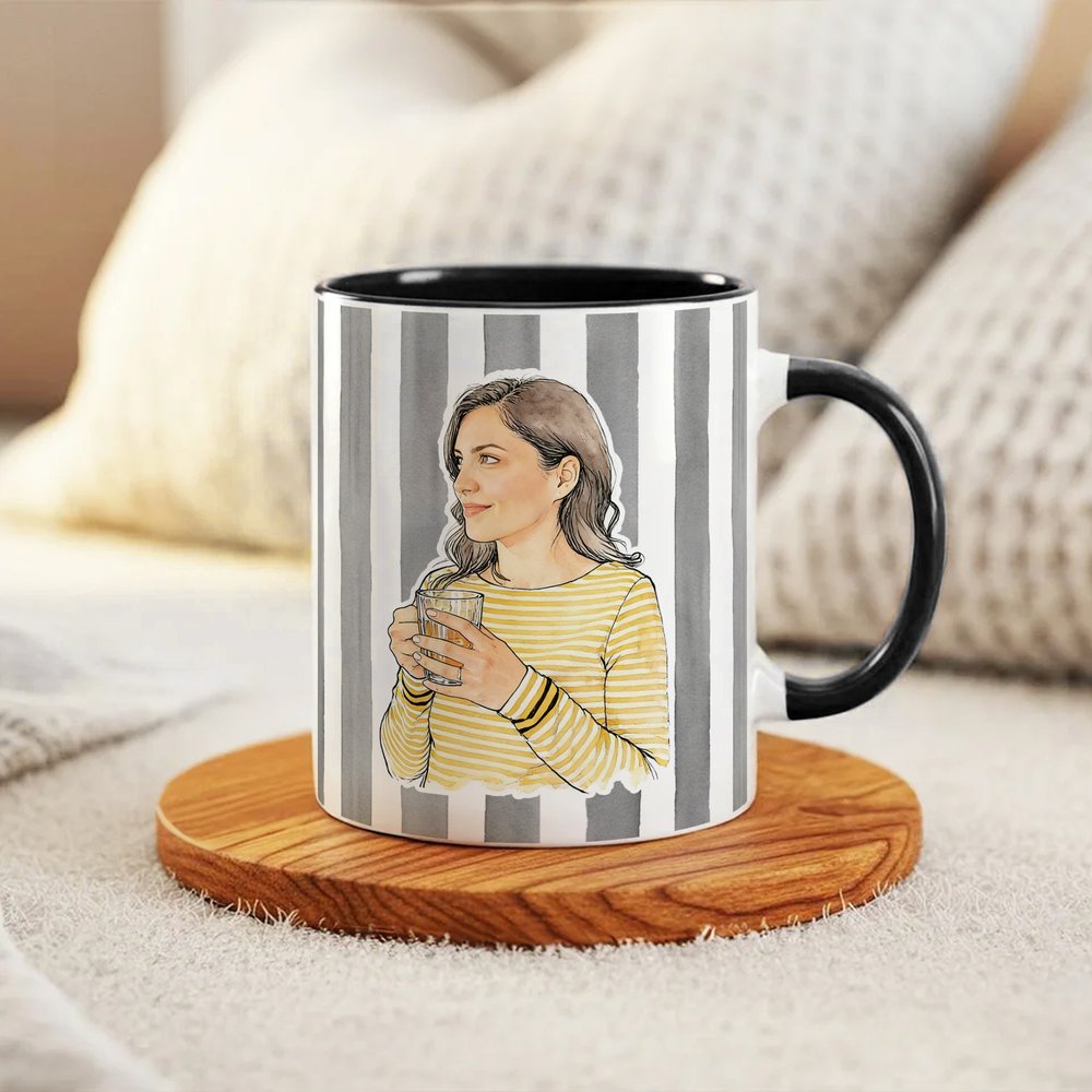Featuring a unique watercolor-inspired design, this mug beautifully blends your personalized photo with elegant, minimalist stripes. The soft, soothing colors and delicate brushstroke details create an artistic and refined look with a warm, cozy atmosphere. Customized with your own photo and title, each mug becomes a truly one-of-a-kind keepsake that expresses personality and heartfelt sentiment. Every glance at the mug brings back warmth, love, and beautiful memories.