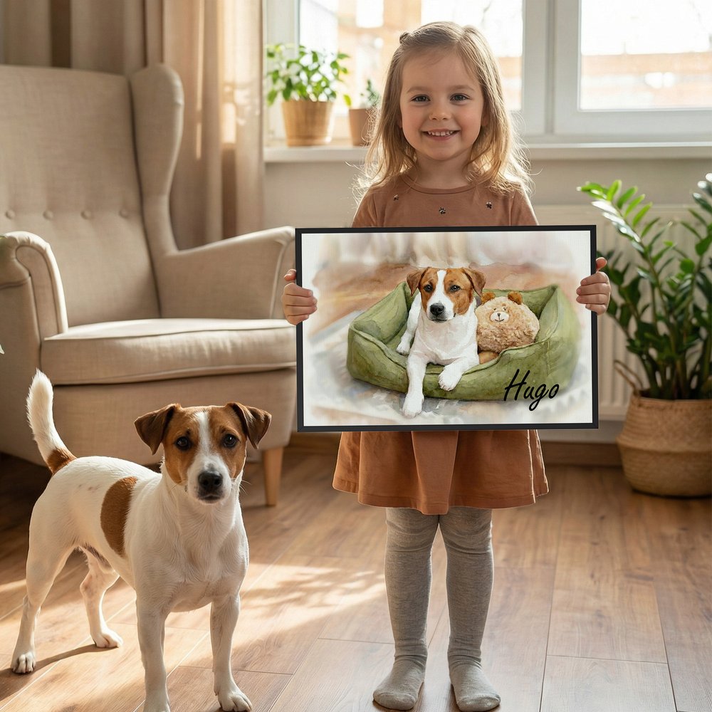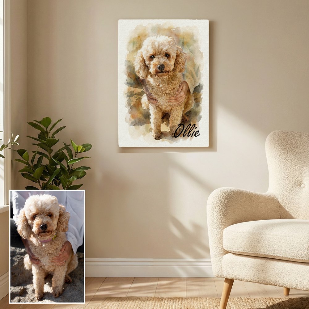 It can be hung on the main living room wall, above the bedroom bed, or in a corner of the study to elevate the home’s artistic atmosphere. It also works beautifully when displayed in the office or a pet-themed space, becoming a warm visual focal point. Whether used for everyday decoration or special pet birthday setups, it keeps your beloved pet’s image gently accompanying you forever.