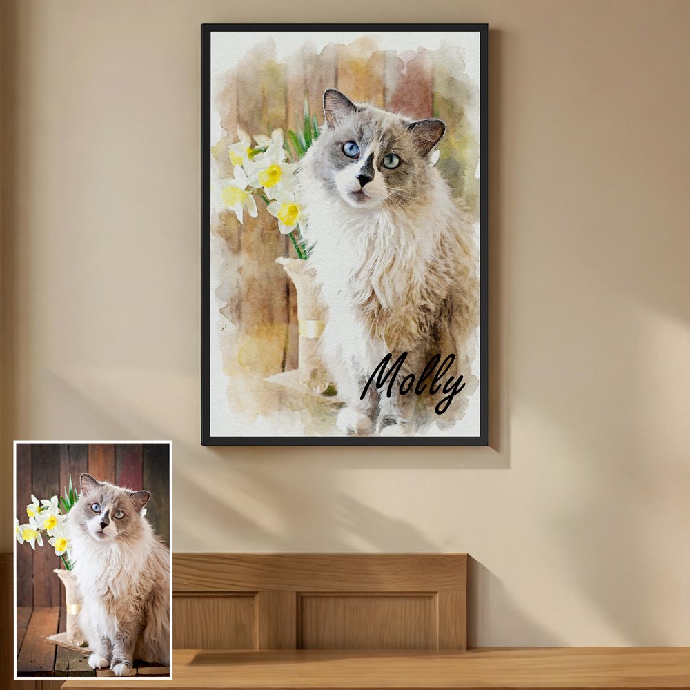 This watercolor pet portrait transforms your uploaded photos of beloved cats, dogs, horses, and more into a soft and warm watercolor style, with delicate natural brushstrokes and light, vivid color blending. You can customize it with a special name at the same time, giving each piece a truly one-of-a-kind mark filled with healing and artistic warmth.