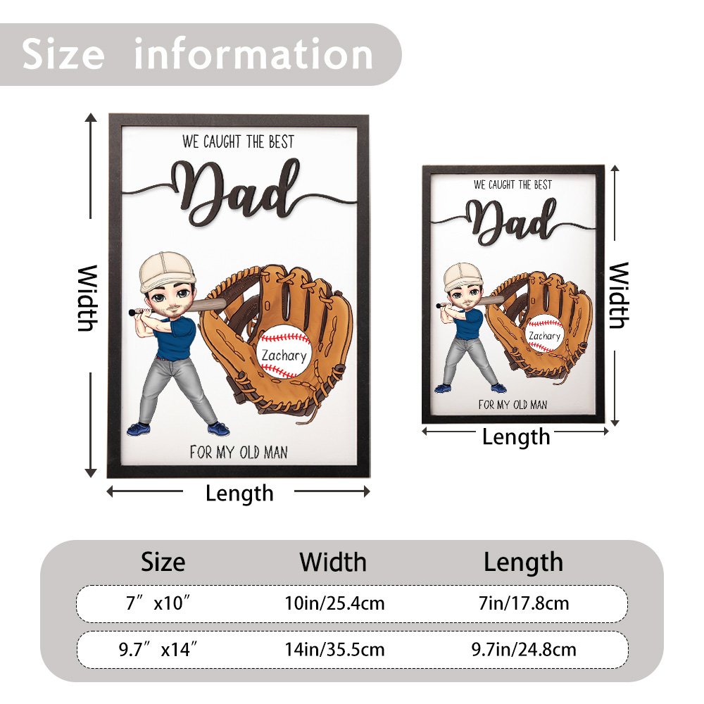 This wooden frame not only expresses the passion and charm of the sport of baseball but can also be personalized with cartoon baseball characters to suit your image. Up to 8 baseballs and names can be customized, each representing a family member. The eye-catching “We Caught The Best” title and a blessing message make the frame more unique and attractive.