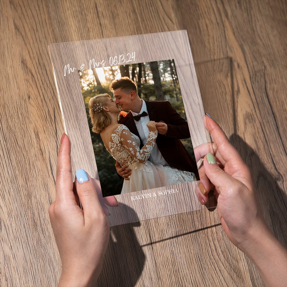 Made from premium quality acrylic, this plaque is durable and provides a clear and vivid image. The newlyweds can enjoy this beautiful keepsake for years to come.