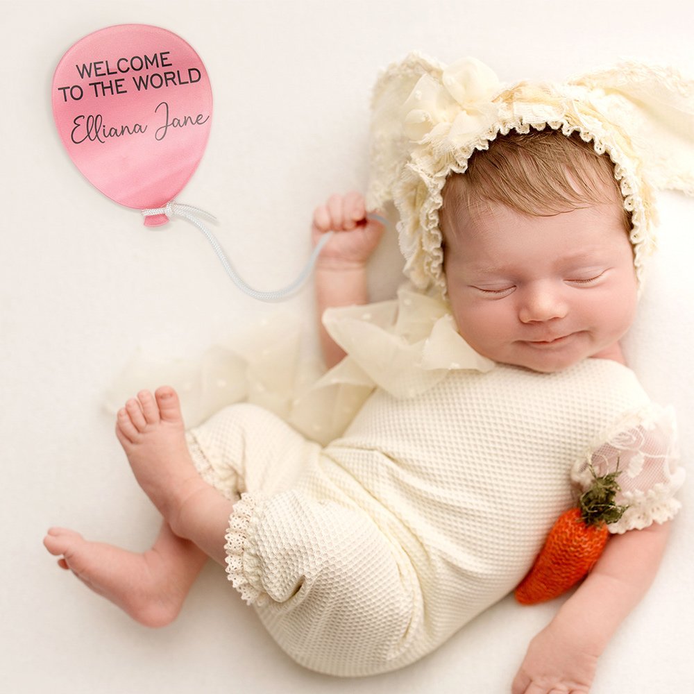 The arrival of newborn features a delightful balloon design that symbolizes the joy and excitement of welcoming a new baby. This hello world newborn sign can custom baby name and choose different balloon painted colors, so you can share the joyful moment of your baby's birth with friends.