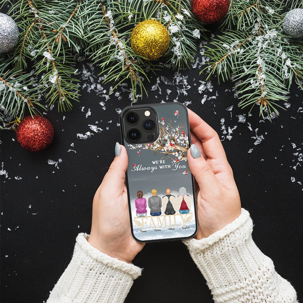 Uniquely designed, this phone case features a charming scene combined with a Christmas element that shows a heartwarming image of family and friends spending time together. With the addition of "We're Always With You" and a personalized message, it will be a special keepsake that celebrates the everlasting love between people.