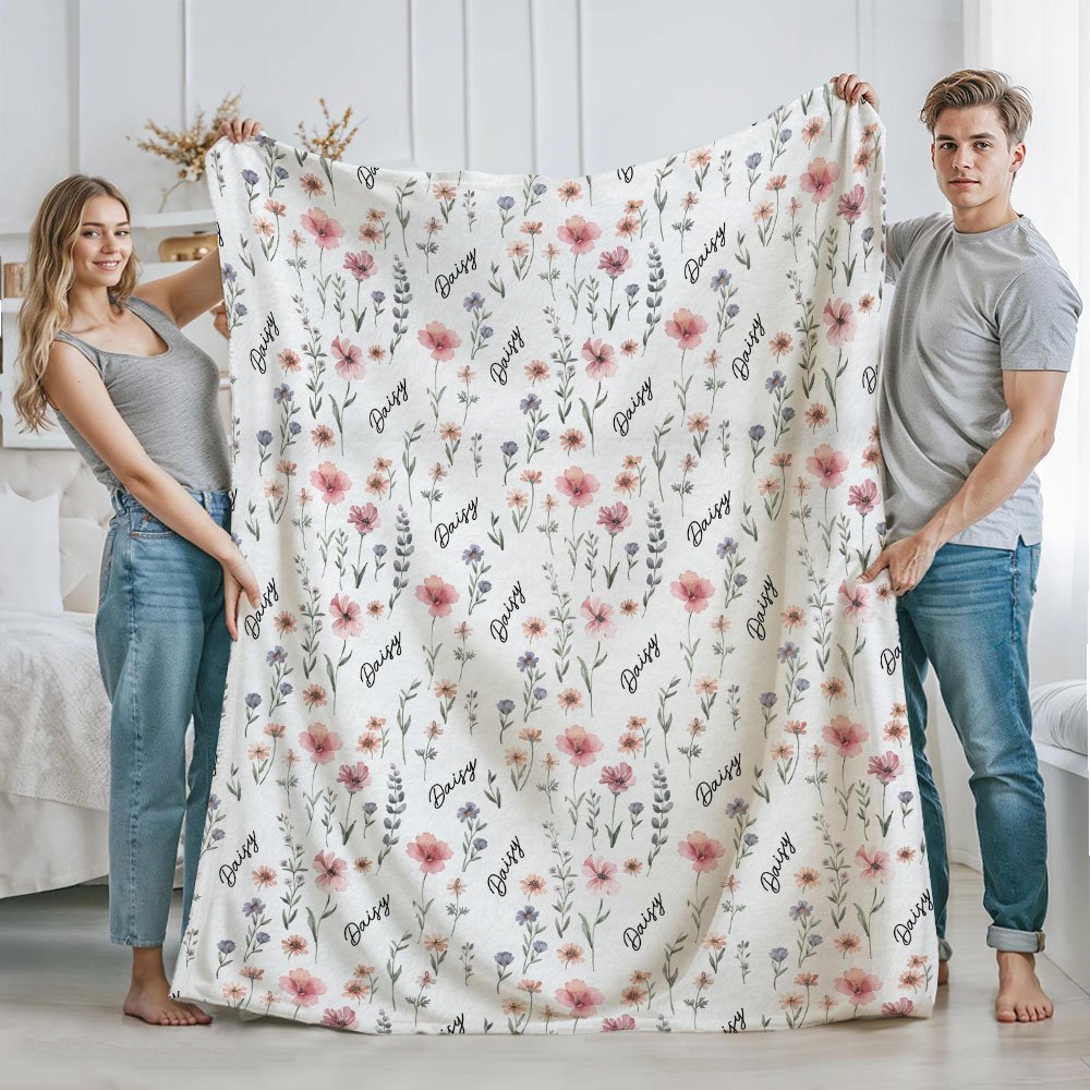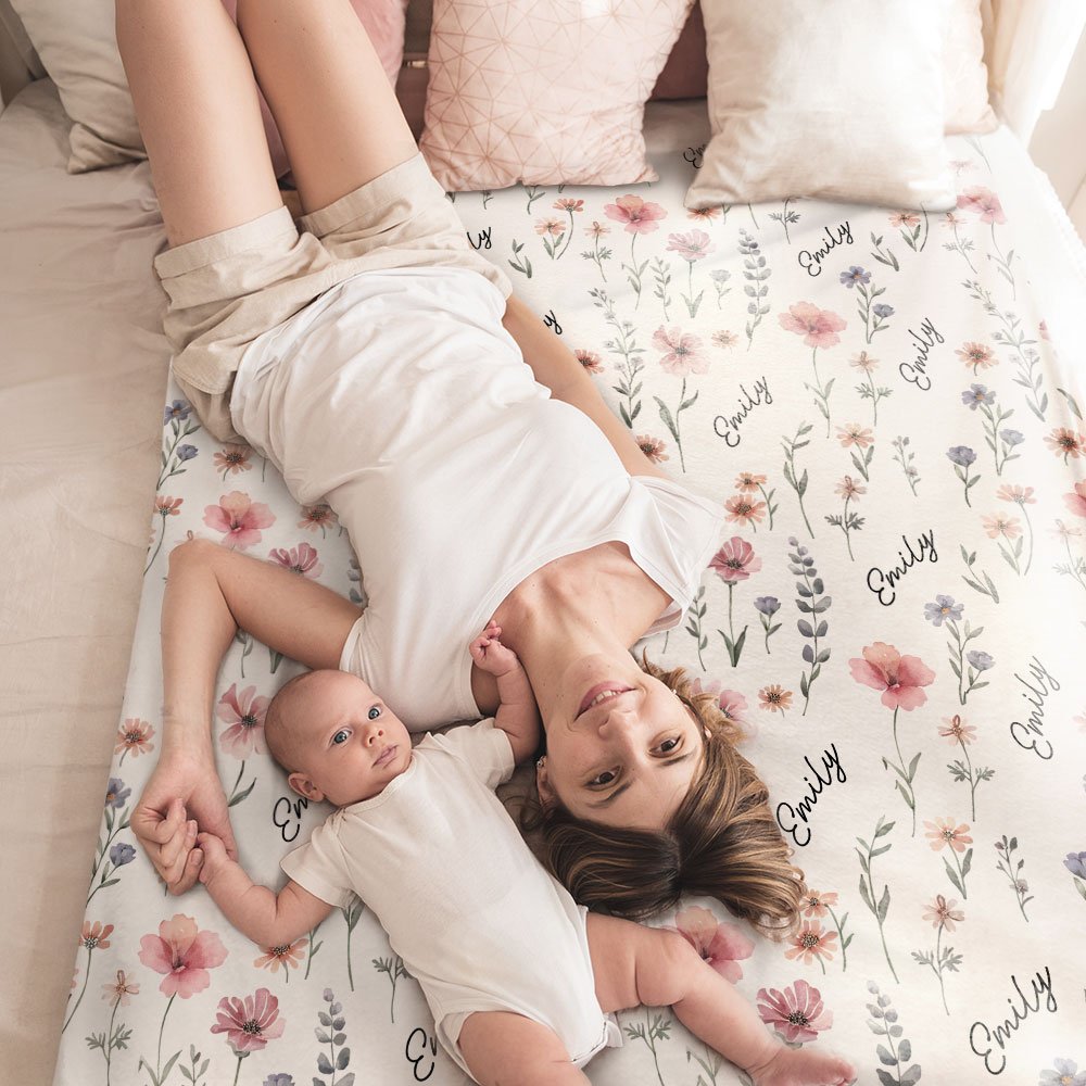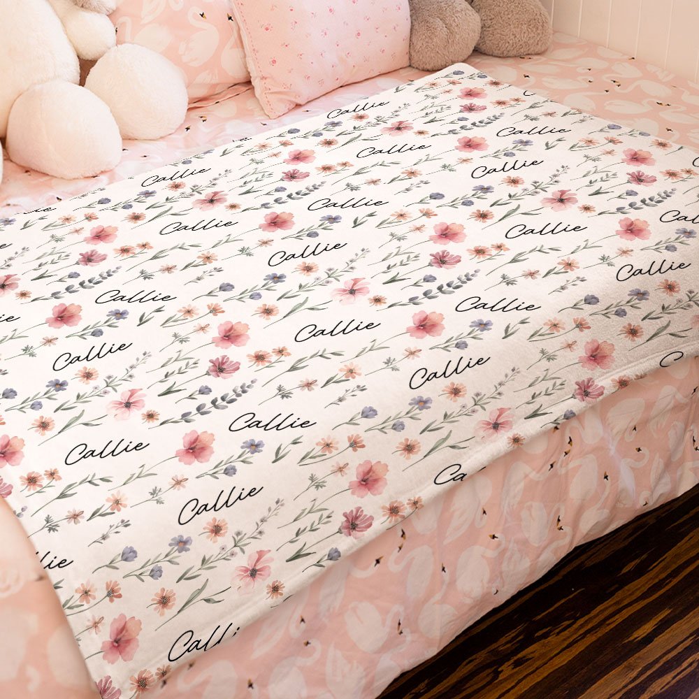 Personalized Wildflower Soft Throw Baby Blanket with Name Baby Shower Birthday Christmas Gift for Newborns New Parents