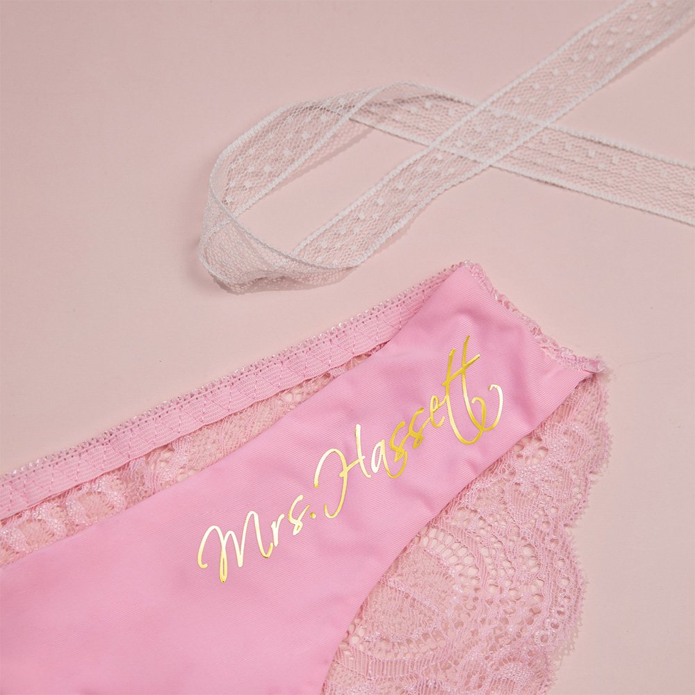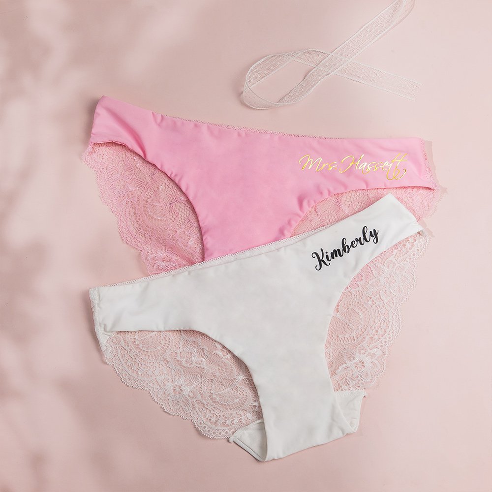 This is a very feminine, pretty color and super cute, sexy briefs, the pattern of the lace is beautiful. Our women's underwear is designed with a low waist, and the hip is covered with lace. The upper left of the underwear corner can be customized with any name and word you need. no awkward panty lines, and can be matched with any clothes for any occasion.