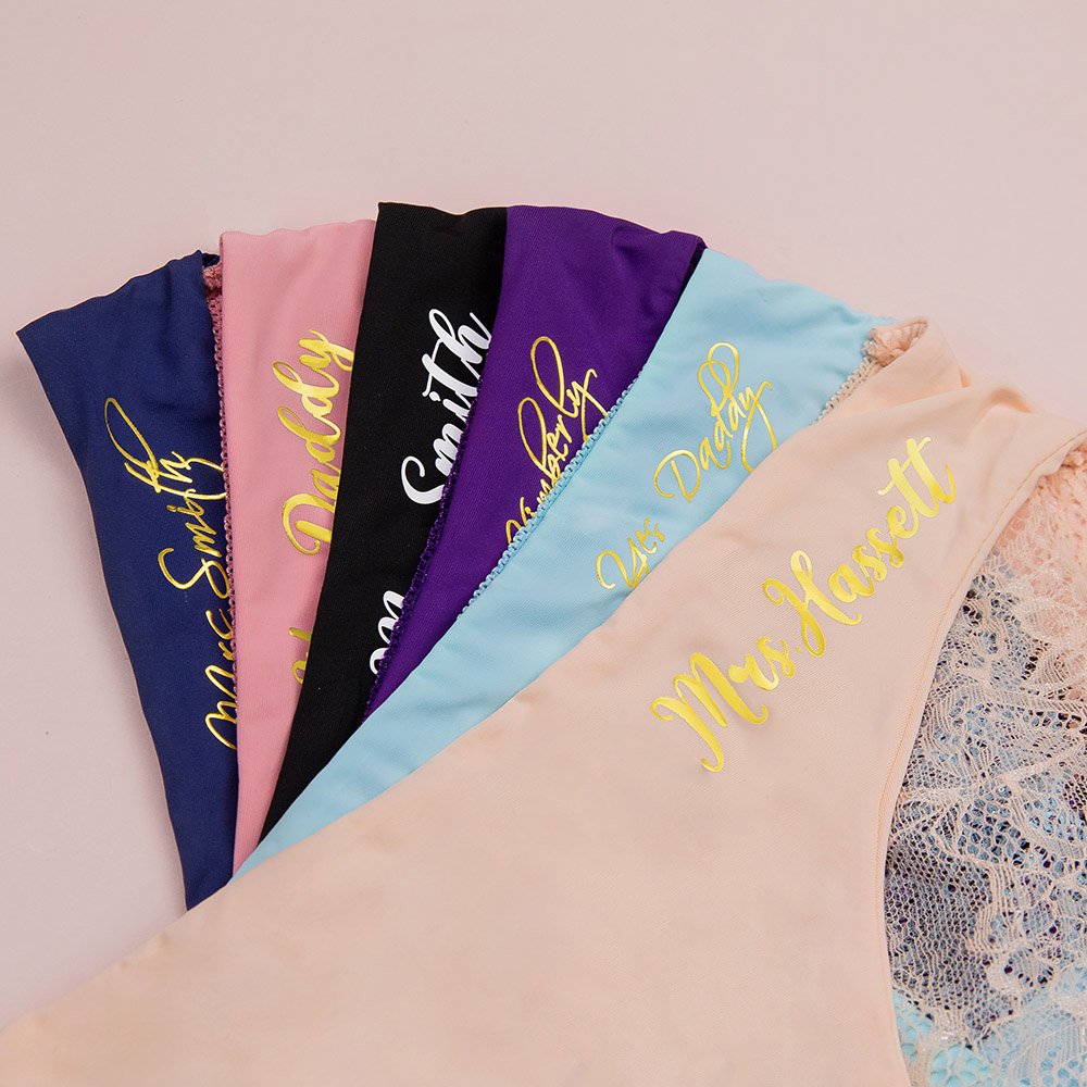 The upper left corner of the panties can be customized with any word and name. It is worth noting that the maximum number of characters per word or name is 12, and the first letter is capitalized by default.