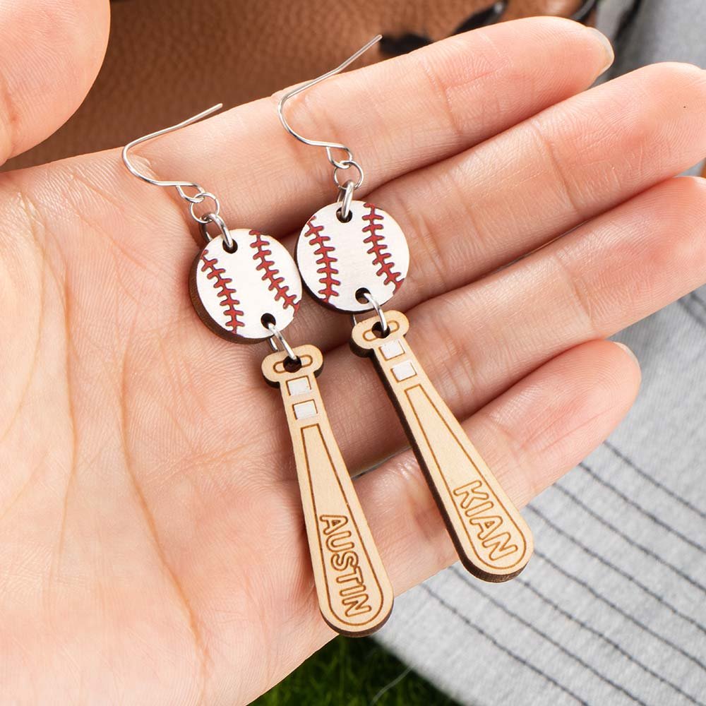 Baseball and baseball bat design earrings is sure to catch eyes and get many compliments. You can be customized with your name or number as you want. Make you the brightest and most shining focus in the stands!