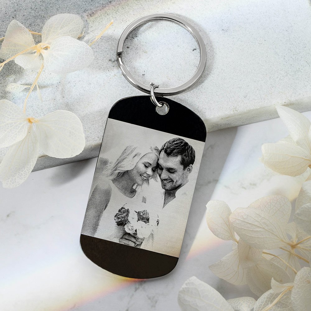 •Simply choose a photo and phrase or any words you want to show on the back of keychain! This dog tag photo keychain is the perfect gift for your husband.