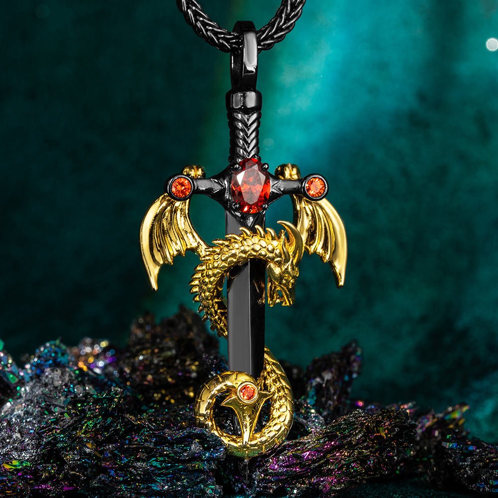 This necklace's highlight is its captivating design, featuring a winged dragon wrapped around a sword pendant. The intricate details and craftsmanship bring this mythical creature to life, making it a bold and eye-catching statement piece. The gothic sword-shaped cross pendant adds an edgy touch, perfect for those who embrace alternative fashion and style.