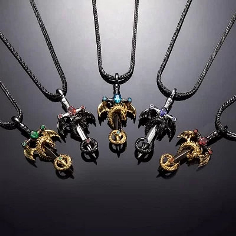 This necklace is made of high-quality brass, ensuring durability and longevity. The pendant is meticulously designed with precision, showcasing the intricate details of the dragon and sword. It uses a foxtail chain, which is durable and very beautiful.