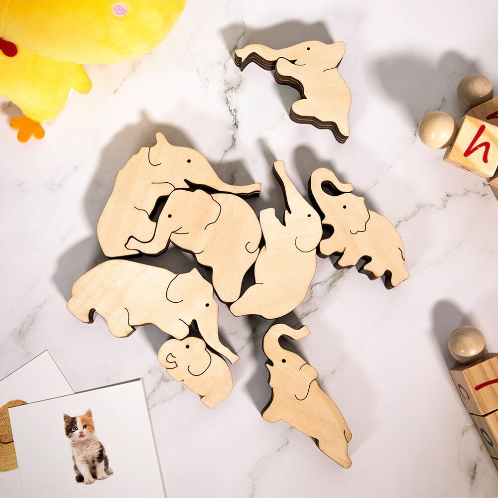 •This wooden puzzle elephants designed by Callie are made of wood, consisting of eight elephant blocks with features that are safe, environmentally friendly, and odorless.Cute and lovely, they can decor your room.